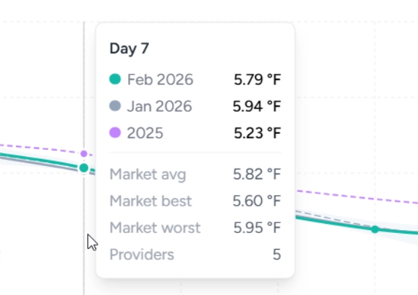 It places your performance within the context of the entire market. A “73rd Percentile” score means your forecast outperformed 73% of the other providers in our global benchmark for that specific metric and time period.