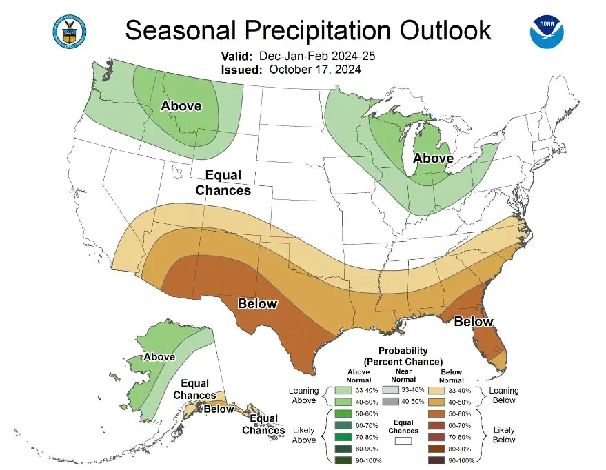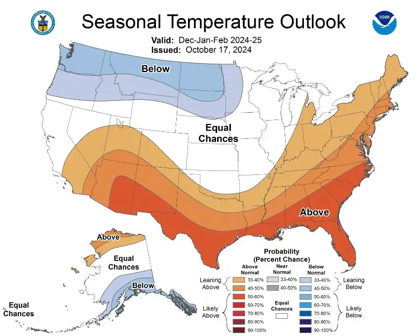 On October 17, NOAA’s Climate Prediction Center released their official winter outlook. Although slower to develop than expected, forecasters still believe La Nina will influence the upcoming winter (December 1 through February 28). NOAA predicts wetter-than-average conditions for the entire northern tier of the continental U.S., as well as northern and western Alaska. Drier-than-average conditions are expected from the Four Corners region to the Southeast, Gulf Coast, and mid-Atlantic states. Temperatures are expected to be cooler-than-average in the Pacific Northwest and northern Plains, with warmer-than-average temperatures in the south and east.