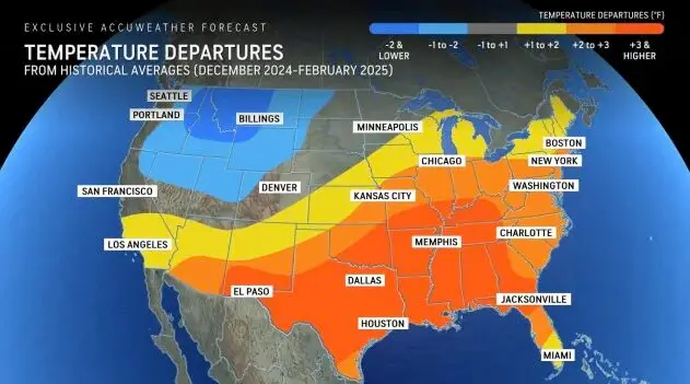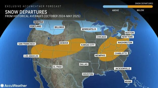 On October 14, AccuWeather released its prediction for the 2024-25 winter season. Their forecasters believe La Nina will be weak for most of the winter, with other factors such as the polar vortex and temperatures in the Gulf and northern Pacific driving the pattern and variability throughout the winter. AccuWeather says December will bring brief blasts of cold air that will trigger lake effect snow. To open 2025, they believe milder temperatures and less snow will be present across the eastern half of the U.S. Lastly, they predict the backend of winter to have the potential for multiple snowstorms in the Great Lakes, Ohio Valley, and Northeast.